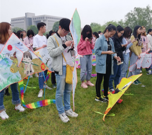 下午1点,三个学院工作人员就来到活动场地进行赛前布置,一切都紧锣密鼓、有条不紊地进行着。本次比赛由三个学院分团委学生会向各参赛小组提供白色风筝,各小组成员进行自主绘制,并根据自己对清明节的认识以及风筝文化的了解,进行绘画、书法等艺术展示。随后,各院参赛者互相交流,互相合作,对风筝进行调整、试飞,以期达到最佳的飞行效果。