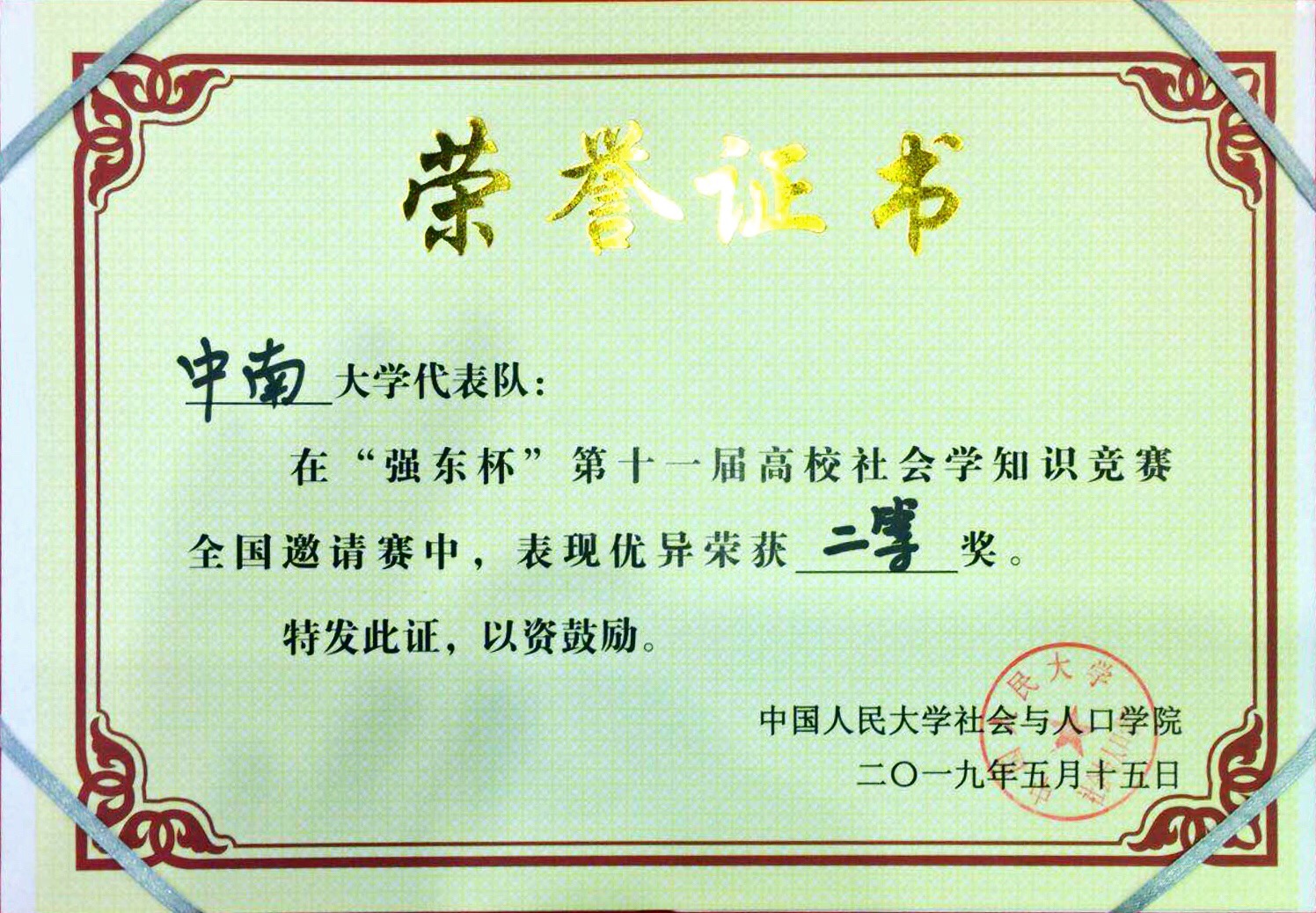 5月15日,从中国人民大学传来喜讯,我院社会学专业2016级本科生在“强东杯”第十一届高校社会学知识竞赛中取得二等奖佳绩。