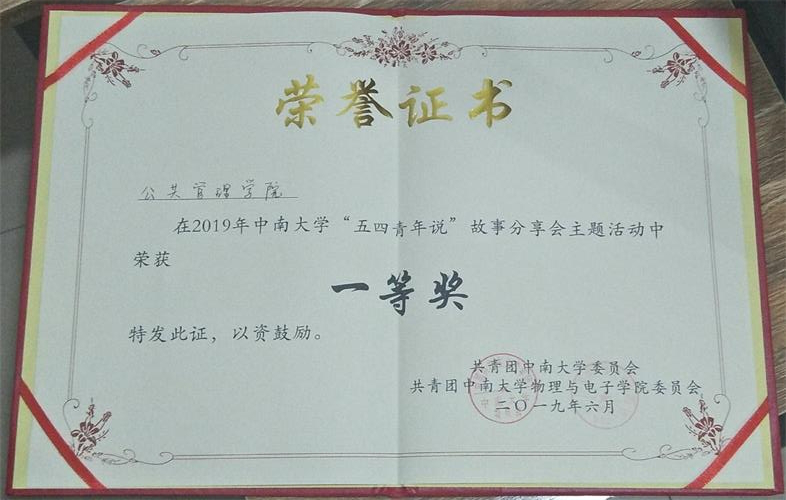 为大力弘扬五四运动精神、歌颂革命先烈的英雄事迹,进一步引导青年师生树立远大报国志向,6月12日下午3时,学校团委在新校区物理楼116组织开展了“五四青年说”故事分享会活动,由劳保1701班王慧迪、劳保1702班郭雨倩同学组成的我院代表队顺利进入决赛并荣获一等奖。