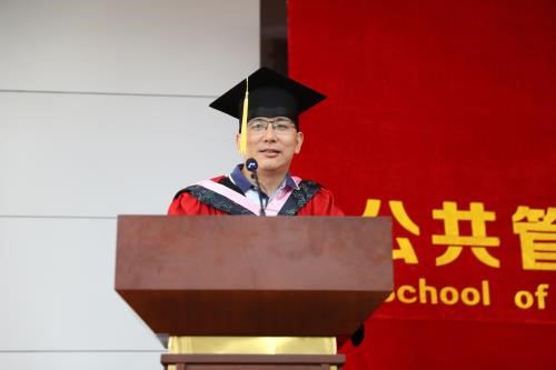 然后,教师代表——人力资源与社会保障系副主任赵书松副教授发言。他围绕四个问题,向同学们讲了精益求精、精诚专一的重要性,希望同学们在现有的领域内,不断创新和突破,在人生中做到通透。在肯定同学们在校的学业成绩外,他还对同学们提出“要对得起我们公管人仰不愧天,俯不怍人”的要求。