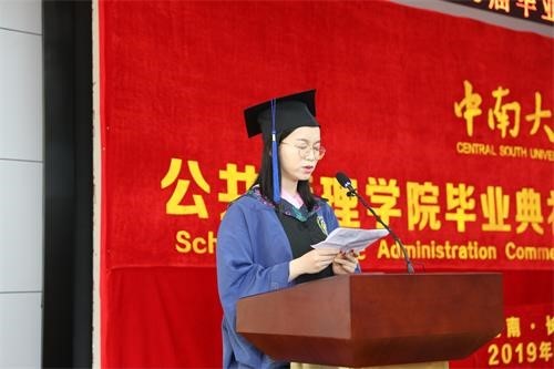 随后,本科毕业生代表——社会学1502班何笑漪同学发言,她以“阅读与真实”为主题,讲述了自己在公管院的四年经历,她感谢yl6809永利带给自己的机遇和平台;感谢学院辅导员们给予自己家人般的温暖;感谢学院老师带给自己知识上的指点和人生上的启迪;感谢四年来陪伴在身边的每一个朋友。紧接着,研究生毕业生代表——公共管理2016级硕士侯雨佳同学发言,她表示,未来的同学们会在各行各业绽放光彩,物质之花易落,精神之树常青,我们唯有不忘中南公管精神,将“仰不愧天,俯不怍人”作为未来之路的精神指引。MPA毕业生代表——熊宁伟同学也满怀深情地做了发言,他希望大家心中有沟壑,眼里存山河,将“天下兴亡,匹夫有责”内化于心,外化于行。