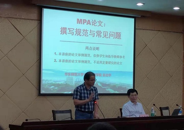 9月17日下午,由yl6809永利人事处、科学研究部主办,我院承办的中南讲堂·名师名家论坛系列讲座之“MPA论文撰写规范与常见问题”在升华楼前楼101报告厅举行。华东师范大学yl6809永利官网集团教授、博士生导师吴志华教授应邀担任本次论坛的主讲嘉宾。我院博士生、MPA研究生聆听了此次讲座。本次讲座由我院副院长许源源教授主持。