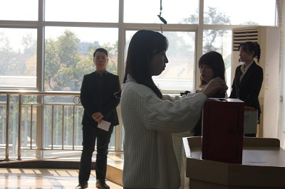 随后,第十一届研究生会主席团选举环节将大会推向高潮。先是由大会筹备工作组资格审查小组宣读代表资格审核报告、第十一届研究生会主席团候选人资格审查报告,并通过了大会总监票人和计票人的名单,由大会监票人宣读大会选举办法。在经过与会代表公平、民主的不记名投票环节后选出了第十一届研究生会主席团成员。