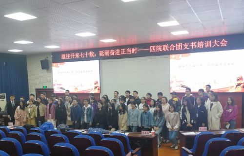 10月26日上午8时30分,我院与法学院、冶环院、马克思主义学院四院团委在南校区文法楼221会议室,联合举行团支书培训大会,进一步加强基层团组织建设,贯彻落实从严治团新要求,提高团支书能力素质,从而推动团务活动更好开展。参会人员包括我院团委副书记张治卓,法学院团委书记谢琰、副书记沈玥,马克思主义学院19级辅导员陈力瑞、团委副书记李丹妮,冶金与环境学院16级辅导员柴媛琳、团委副书记姜子昂,校团委组织部团日活动管理中心柳思怡,我院优秀团支书杨乐,法学院优秀团支书刘子源,以及法学院、冶环院、马克思主义学院和我院2018、2019级全体团支书。