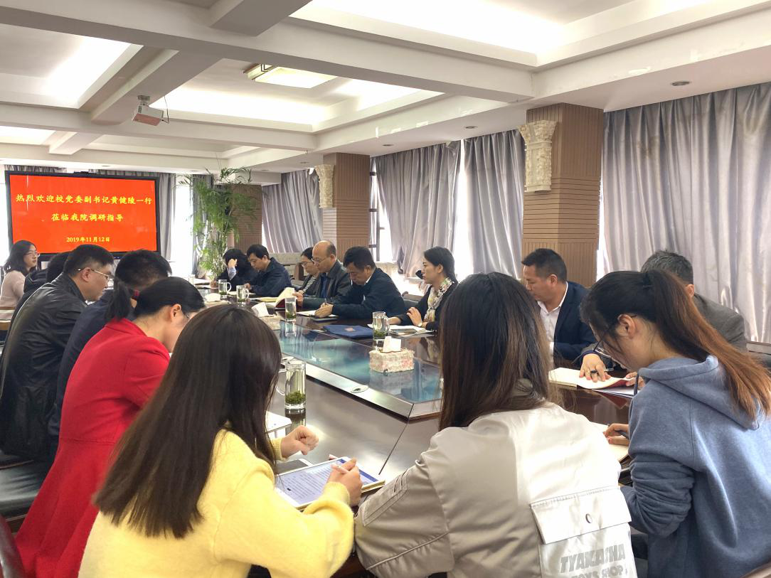 11月12日上午10点,在升后10楼和谐阁,校党委副书记黄健陵,校党委宣传部部长胡杨,校办副主任单国友,宣传部副部长李华东、王建湘、欧光耀一行来学院调研指导宣传工作。院党委书记刘迪、副书记耿贵斌,副院长许源源、姜国俊,以及师生代表二十余人参加了此次调研座谈会。会议由校党委宣传部部长胡杨主持。