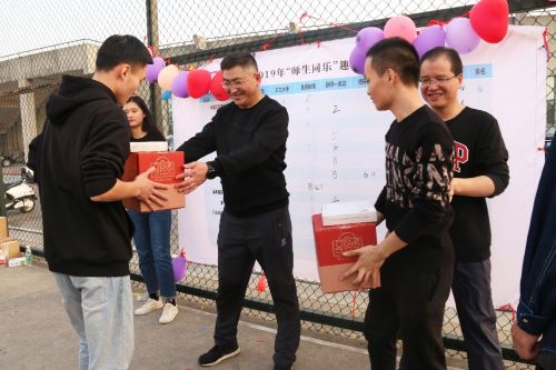 经过两个多小时的精彩角逐,最终,邱铭山车队6.0和虾仁猪心队以出色的表现获得了本次运动会的并列第一名。学院领导和老师为获奖的八支队伍颁发奖品后,主持人宣布本次趣味运动会圆满结束,同学们带着丰厚的奖品和愉快的心情有序离开了活动现场。