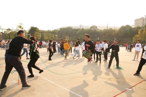 在四人五足的赛场上,同学们齐心协力、互相配合,步伐也愈发稳健坚定。当有队伍落后时,所有选手都为其加油打气,团队精神在这里得到了充分体现。拔河赛场上欢呼呐喊声不断,队员们更是斗志昂扬、精神振奋,展现着公管人的蓬勃朝气。在田间一条龙、鱼贯跳绳等项目中,同学们更是玩得不亦乐乎。