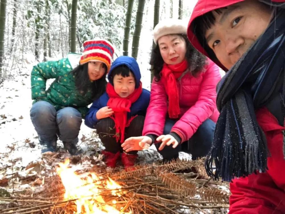 面对这个问题,米莉夫妇说起今年春节的一场“雪地求生”。那是2月15日,他们带着一双儿女在天寒地冻里爬上大瑶山,走进竹林去“探险”,冻得直哆嗦的一家四口临时起意,要在雪地里点燃篝火取暖。