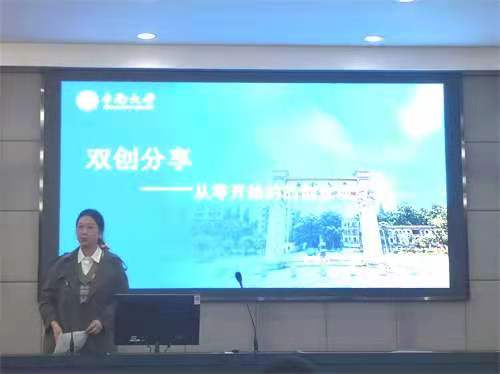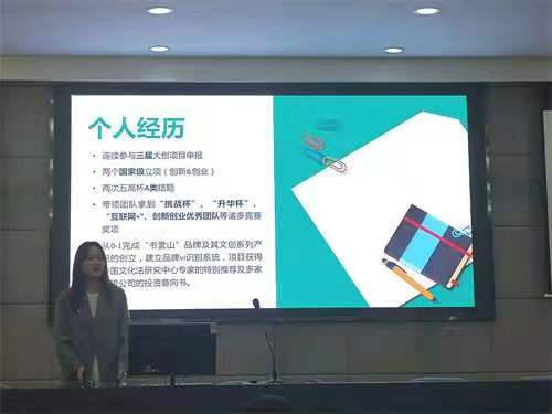 随后,三位优秀创新创业学生代表上台,结合PPT与同学们分享参与比赛后自己所获得的经验与方法。李紫茹同学立足于项目路演,详细解说了演示文稿、项目和团队三个要素,王梦姿同学从自身从零开始的创业项目出发,阐明了动机、项目主题和项目策划与执行中需要关注点细节,皮特同学结合自身案例谈到了团队组建等方面的注意事项,他建议大家可以跟随学长学姐们开展双创项目,甚至是继承已有的双创项目,在此基础上开展相关研究。