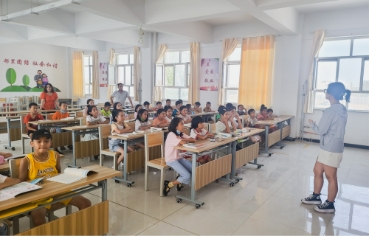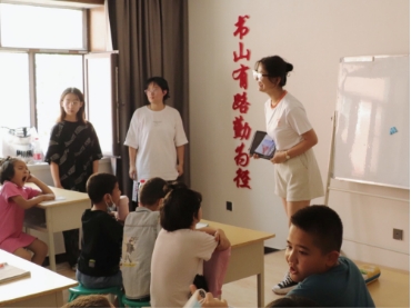 在民俗风情社区,首先,支教成员主要为孩子们科普了宇宙和太阳系,扩充孩子们对宇宙的认知。在和小朋友互动时,一位小朋友对课堂内容十分感兴趣,支教成员课间休息时分充分与其交流后,了解到他的梦想是成为一名宇航员,便纷纷对其表示鼓励与支持。随后,成员们为孩子们进行入门的生物课教学,详细介绍了生物的分类、食物链等小朋友们感兴趣的话题。孩子们在课堂上听得津津有味,争先恐后地回答着老师的提问,教室气氛十分活跃。