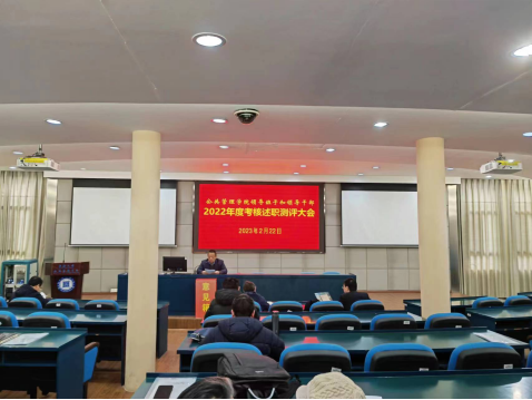 2月22日下午,我院在公管楼404报告厅召开了领导班子和领导干部2022年度考核述职测评大会。大会由院党委副书记耿贵斌主持,全体教职工参加了此次会议。