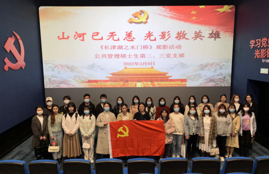 山河已无恙,光影敬英雄。为了更好的激励支部党员坚定理想信念、传承红色基因、肩负时代重任,2022年3月9日晚7点,我院公共管理硕士生第二、第三党支部,联合组织党员和积极分子开展《长津湖之水门桥》主题观影活动,致敬用生命守护万家灯火和盛世团圆的英雄。