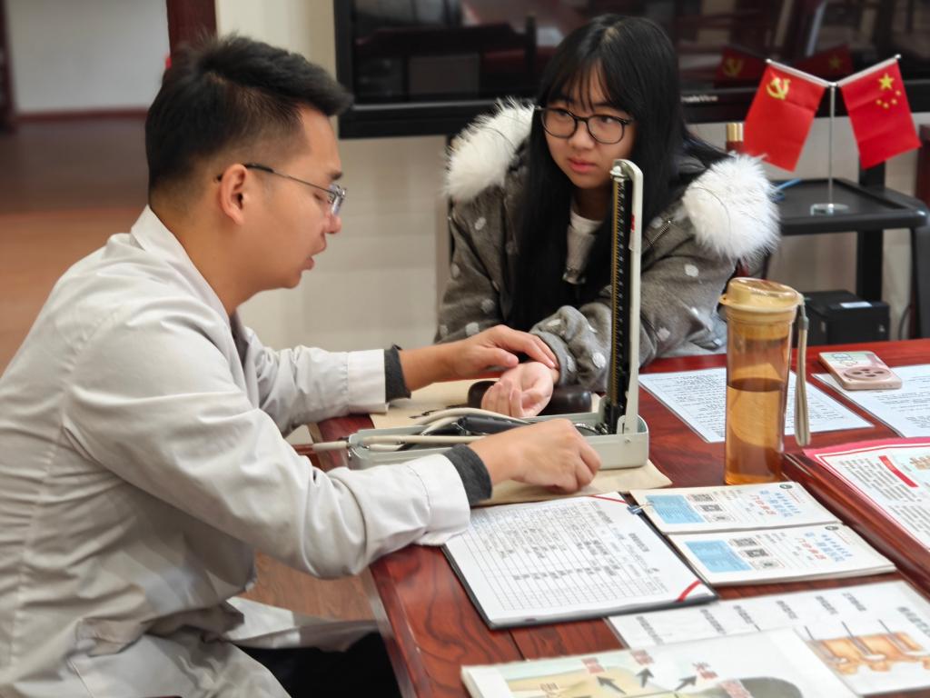 该活动每天分上午9:00-12:00和下午2:30-5:10两个时段进行,方便教职工灵活安排时间参与。活动期间,理疗师为前来咨询的教职工进行了专业的血压测量,并通过中医传统的脉诊、舌诊、手诊、面诊等方法,细致地为各位老师进行体质辨识和健康评估。针对女性教职工关注的健康问题,提供了包括痛经、宫寒、乳腺保健及月经不调等妇科问题的专业咨询与调理指导。同时,针对教职工队伍中普遍存在的因长期伏案工作引发的颈椎病、肩周炎、腰痛、失眠等问题,以及高血压、糖尿病、肠胃病、风湿、痛风等慢性病的日常调理,现场提供了中医理疗体验,如推拿、电子针灸、艾灸、刮痧、足疗等多项服务,帮助大家缓解不适,指导日常保健方法。