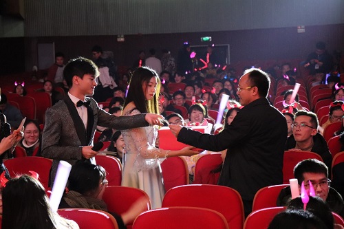 感念,今夜你我相聚。第二章的节目将晚会推向高潮,现场氛围轻松愉悦、其乐融融,弥漫着新年的喜悦。小品《新生上官路》、舞蹈《Do you》、歌曲串烧《追光》以及乐队表演《天台乐队》,再一次带给现场观众视听盛宴。第二轮抽奖环节采取线上抽奖的方式,现场观众通过关注“公管新青年”公众号参与活动,马克思主义学院王翔院长和我院耿贵斌副书记分别见证了晚会一等奖和二等奖的诞生。