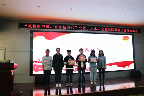 为做好基层团组织建设、提高团支书能力素质,10月24日下午2时,我院与土木工程学院、交通运输工程学院三院团委在校本部立言厅联合举办团支书培训会。我院分团委书记闵迪,分团委副主席王芳芳,校团委活动管理中心干事党佳悦,校团委活动管理中心干事傅敬恩出席本次会议,三院2018、2019及2020级团支书参加本次会议。本次大会由我院分团委组织部部长谢青青主持。