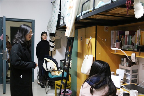 晚上7时30分,闵迪老师带领生活权益部工作人员分别对铁道校区铁二舍、新二舍和新三舍进行检查。在本次查寝的过程中,大部分寝室卫生合格,干净整洁,部分寝室购置了洗衣机,未发现有使用电磁炉、烘干机、电火炉等违规电器的情况。闵迪老师排查违规电器、检查寝室卫生的同时,也对同学们进行了亲切的问候,对寝室用电安全及准时熄灯等情况提出要求,叮嘱同学们注意寝室卫生,及时改正寝室存在的不良现象,生活学习两手抓,营造良好的寝室氛围。