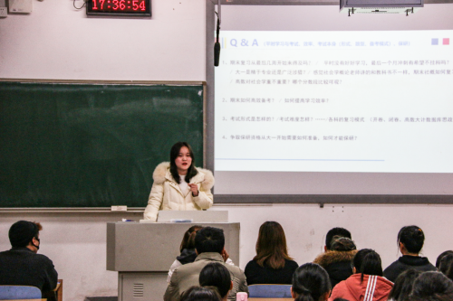 大会第四项,经验分享与答疑。2019级的杨东梅同学、彭剑秋同学、武天琪同学和穆梦慧同学结合自身经历和专业特点,讲解期末考试各科目特点和备考方式,提出学习方法的建议,提醒2020级同学端正学习态度,抓重点、有层次的规划学习。最后,来自2017级行管专业的肖云清同学结合保研清华的经历,提醒同学们重视过程才能收获硕果,提升自己的硬实力的同时,也要努力提高软实力。