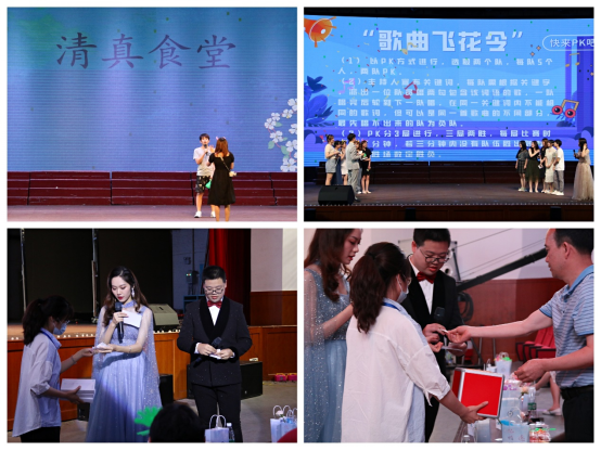 晚会进入第二篇章:“今朝·缘结星河”。在此篇章中,大家欣赏了自备创意MV的《李白》独唱,陶醉于极具魅力的《like it》舞蹈串烧,观看了幽默的相声《留学记》,品味了满是回忆的话剧《我的大学》,倾听了辅导员们精心准备的《放心去飞》,现场精彩迭现,快乐与不舍交织,掌声久久萦绕。篇章末,进入游戏与抽奖环节。本轮游戏为《歌词飞花令》,参与者们根据给定关键词唱出相关歌曲,场内歌声飘扬,其中不乏优美之声,使人如获至宝;本轮抽奖环节由许源源院长和耿贵斌副书记分别抽取一、二等奖,并为中奖同学颁布奖品。