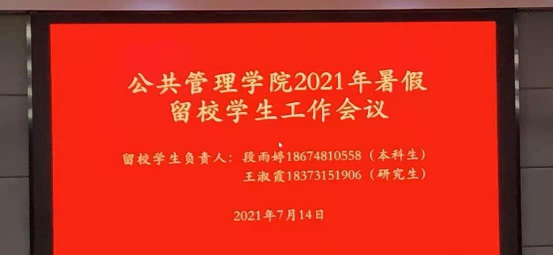 为做好暑期留校学生的管理与服务工作,7月14日15:30在公管楼404召开了2021年暑假留校学生工作会议。学院党委副书记耿贵斌、学工办主任徐立坤、辅导员梁慧、辅导员闵迪及全体暑期留校学生参加了此次会议。会议由梁慧老师主持。