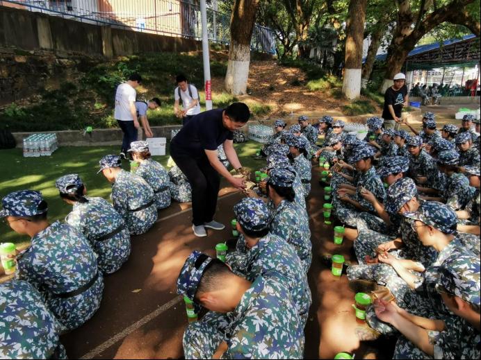 9月17日上午9点,艳阳高照,学院院长许源源、院党委副书记耿贵斌和哲学2101班导师刘靖贤、法学类2101班导师田孟、法学类2102班冷波等一行来到南校区足球场,对正在军训的我院2021级本科新生和各排教官,进行了亲切的“送清凉”慰问活动。由2021级本科生辅导员梁慧老师主持。