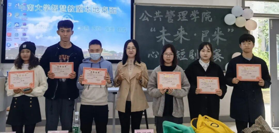 经过激烈的角逐,法学类2102班凭借全体演员的精彩表现,在此次大赛中获得一等奖,并将代表学院参加校级心理剧大赛。最后,闵迪老师为获奖队伍颁发奖状并合影留念,大赛圆满结束。