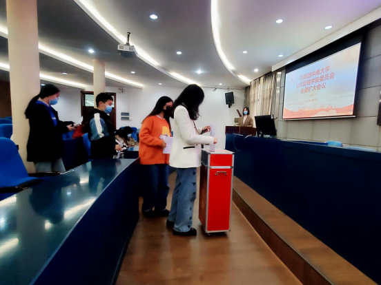 最后,分团委书记闵迪宣布候选人获得票数及选举结果,大会综合多数团支部和团员意见,集体研究遴选确定刘正宗、邸可达、何淇滢、程姣为湖南省第十六次团代会代表候选人推荐人选。
