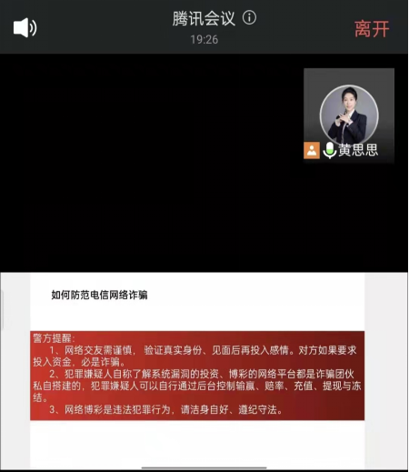为了提高我院学生对于电信诈骗的防范意识,保护同学们的财产安全,我院特邀中国银行yl6809永利支行黄思思行长,于5月22日上午10点进行2022年金融知识及防诈骗讲座,讲座以线上形式开展。