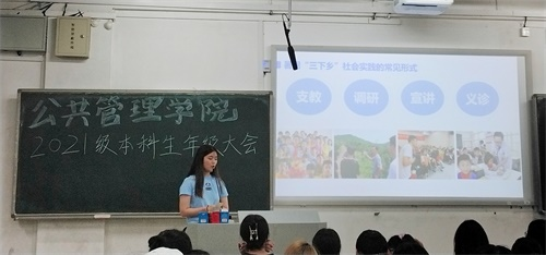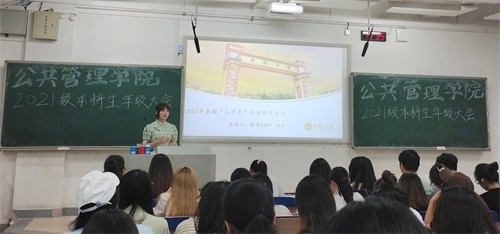 6月12日下午3时30分,在新校区A座101教室,学院召开2021级本科生年级大会。学院2021级本科生辅导员梁慧主持本次大会,学院优秀学生代表行管1901班穆梦慧,哲学2001班陆喆,社会学2002班董慧茹,学院2021级全体本科生参会。