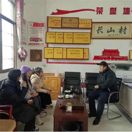 2月25日上午,团队成员前往江华县大圩镇长山村开展实地调研,采访了yl6809永利驻村帮扶工作队队员王志伟老师,参观了yl6809永利长山健康小屋、yl6809永利江华县苦茶生态示范园基地、yl6809永利蔬菜直供基地。王老师从经济、文化、生态、党建、公民德性等多个方面,向团队讲述了yl6809永利对当地的帮扶工作,使团队成员对yl6809永利助力江华县全面发展所给予的支持有了更深入的了解。