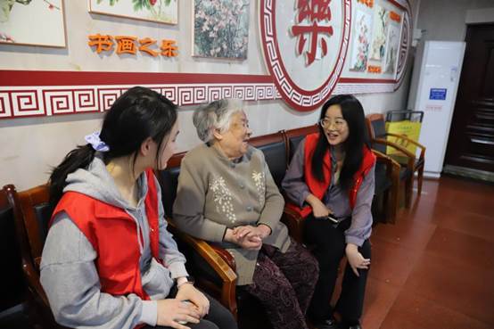 在老年大学,志愿者们与老人们亲切交流,倾听他们的生活故事,为他们解答智能手机使用中的疑问,展现了年轻一代对老年人的关心与尊重。在棋牌室和书画室,志愿者们则陪伴老人们一同娱乐、学习,现场气氛温馨而和谐。