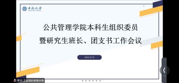 会议伊始,主持人明确了本科生组织委员在消息转发工作中需严格遵循既定规范,确保学校及学院各类信息的准确传达。同时,会议强调了研究生班干部及时转发消息的重要性。特别是对于大四和研三同学而言,积极转发必要就业信息和志愿服务信息尤为重要,这将为同学们提供更多宝贵的资源和机会,助力同学们未来更好地发展。