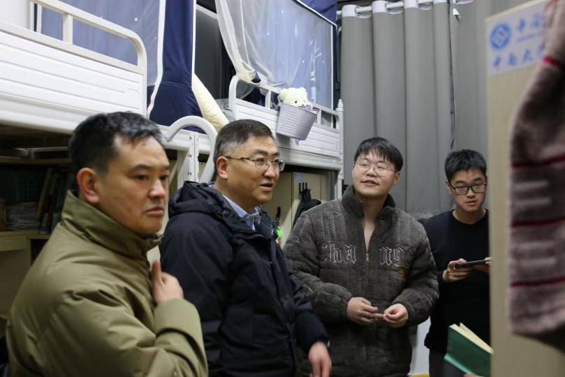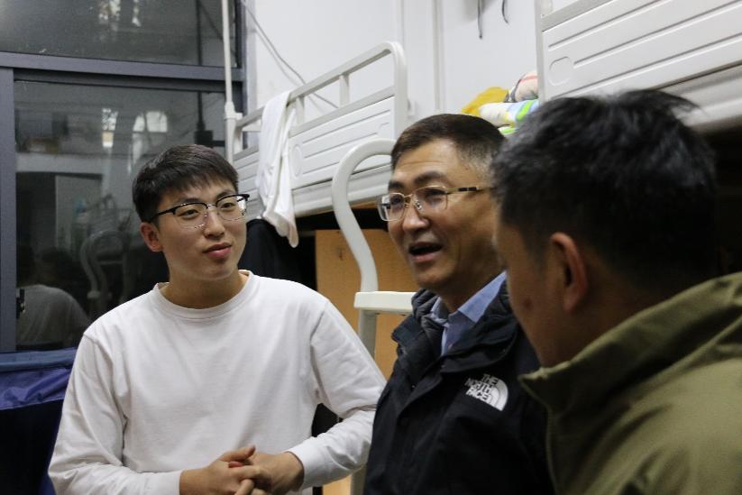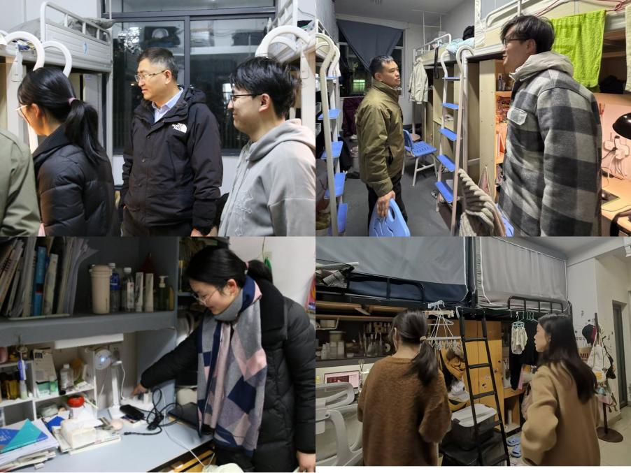 为进一步加强校园安全管理,切实加强宿舍安全教育,12月19日晚上7时,我院党委副书记耿贵斌,带领学工办主任徐立坤、辅导员梁慧、张宇奇以及兼职辅导员李文嘉一行深入学生宿舍,开展全面细致的宿舍安全教育检查工作。