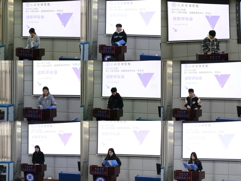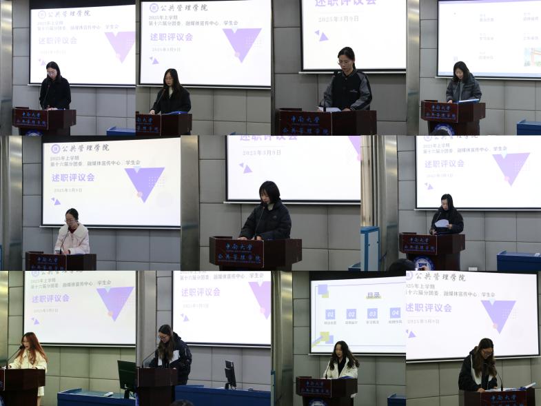随后,院分团委、融媒体宣传中心、学生会成员张贤慧、黄佳雯、朱肖肖、陈晟岚、王圆斐、李乐瑶、李泓柯、钱思琪、谢丹丹、王松阳、谭宇翔、马阿圆、王乐轩、廖书慈、谢梓涵、黄铁江、安金株、赖舒垚、覃潘蕾、覃刘一飞、杨宵慧依次上台述职,围绕政治素养、道德品行、学习成绩、工作成效、纪律作风五个方面详细报告。学生代表在认真听取报告后线上匿名打分,主持人现场报告分数。