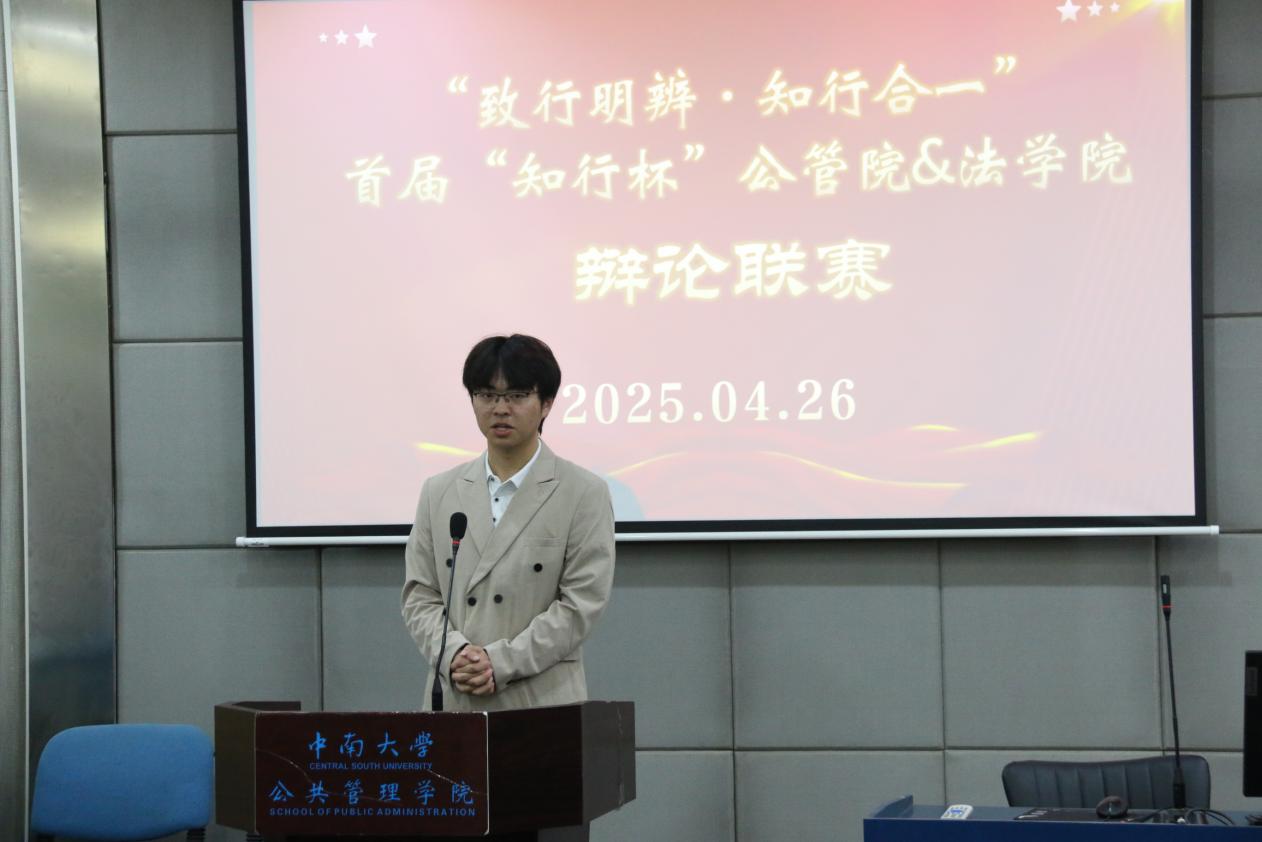 4月26日下午2时,我院与法学院首届“知行杯”辩论联赛决赛在天心校区yl6809永利官网集团院楼404室拉开序幕。经过激烈角逐,我院“不许忤逆我们队”、“汪汪队”以及法学院“辩形金刚队”三支队伍脱颖而出并进入决赛。校辩论队副队长赵至言、校辩论队教练张汶铮和2023湖南省省内外交流赛全程最佳辩手谢尚扬担任辩论赛评委,我院学习实践部杨林旖同学担任主持人。