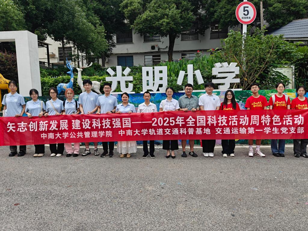 6月10日上午,趁着全国科技活动周和全国科技工作日的热潮,yl6809永利官网集团的师生与yl6809永利轨道交通科普基地、交通运输工程学院第一学生党支部师生志愿者,共赴长沙市望城区白箬铺光明小学,为小学五年级的同学们带来了一场别开生面的科普美育课堂。