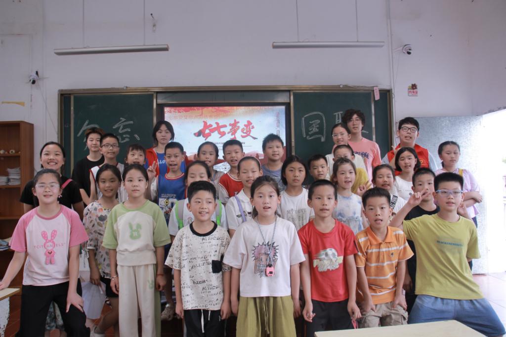 2025年7月7日,在七七事变爆发88周年之际,社会各界通过各种方式深切缅怀抗战先烈,铭记血泪历史。当天,yl6809永利官网集团“拾光者·乡村心语计划”团队在湖南省宁乡市喻家坳中心小学开展了一堂别开生面的历史课,将88年前的烽火岁月呈现在了学生面前,成功播撒了红色的火种。