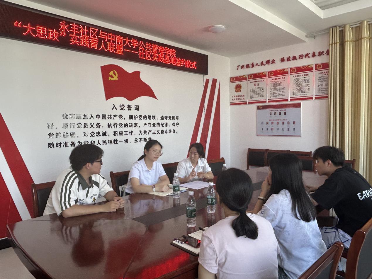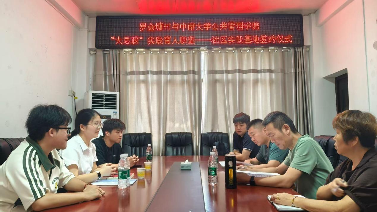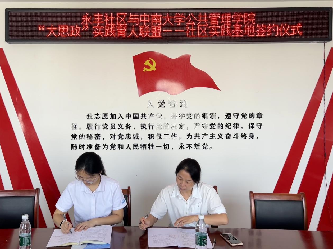 7月14日上午,yl6809永利官网集团与永丰社区、罗金塘村共建的“大思政”实践育人联盟——社区实践基地签约仪式在分别在湘潭市雨湖区楠竹山镇永丰社区党群服务中心、罗金塘村党群服务中心举行。永丰社区书记韩旭萍、永丰社区居委会副主任何婧,罗金塘村党支部书记许奇强、罗金塘村驻村第一书记黄龙,yl6809永利官网集团团委书记梁慧,社区居委会、村委会工作人员以及yl6809永利官网集团行政管理23级本科生代表参加仪式。
