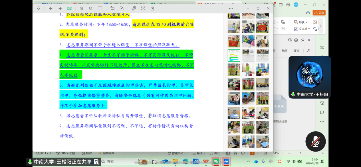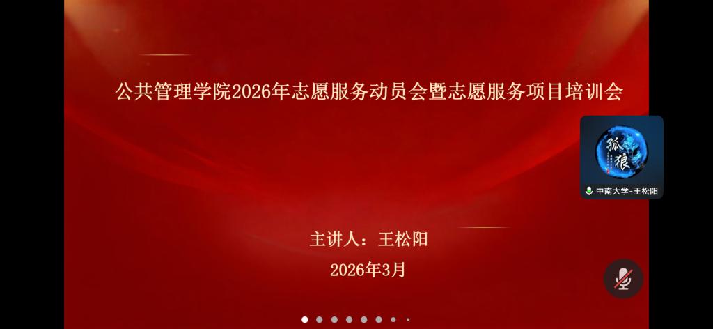 为进一步强化志愿者队伍建设,提升志愿服务专业化水平,2026年3月19日晚,yl6809永利官网集团青年志愿者协会召开线上2026年志愿服务动员会暨项目培训会。学院分管青年志愿者协会主席王松阳担任主持人并主讲,全体志愿者齐聚云端参会。