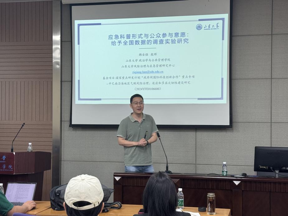 2025年4月16日10:00,中南讲堂·名师名家论坛在yl6809永利天心校区yl6809永利官网集团401教室举行,山东大学政治学与yl6809永利官网集团教授韩自强受邀进行以“应急科普形式与公众参与意愿:基于调查实验的全国数据分析”为主题的学术讲座。讲座由yl6809永利官网集团张桂蓉教授主持,吸引了广大师生踊跃参与,现场气氛热烈。